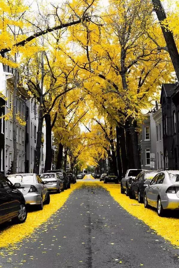 华盛顿有着众多的人文景观,这一棵棵金黄色的树木连成一片美翻了街头,就连飘落的花瓣也是那么让人沉醉!