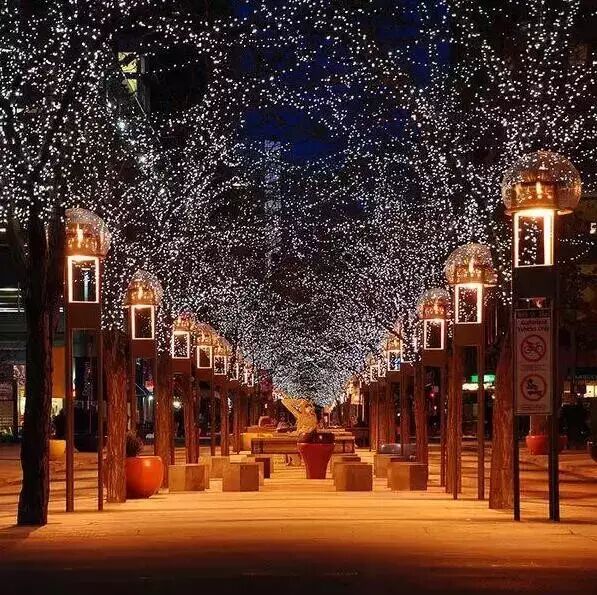 街灯如点点繁星,衬托着这个都市的温情。走在丹佛这条街上,夜晚也梦幻起来,像是误入精灵的世界。