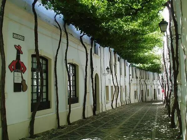 赫雷斯城是世界著名的雪莉酒出产地,而这条林荫小巷位于老城区中的人行道,据说是本地酒厂的一部份。它和一般的林荫大道不同,细树干攀着两旁的墙壁生长,让原本就别致的小巷更有味道。