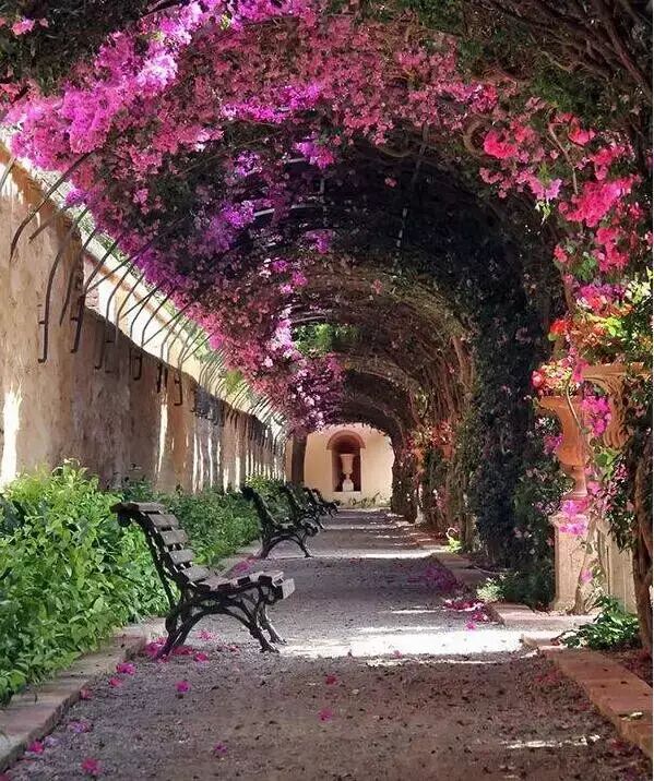 数百年遗留的文化浸润与新世纪的新鲜血液互相交战,正如湿润海风与似火艳阳共同塑造了如今瓦伦西亚的独特气质。瓦伦西亚号称是欧洲的“阳光之城”,这里四季常青,气候宜人,这条拱形的蔓藤于红花交相辉映,是恋人约会的不二之选!