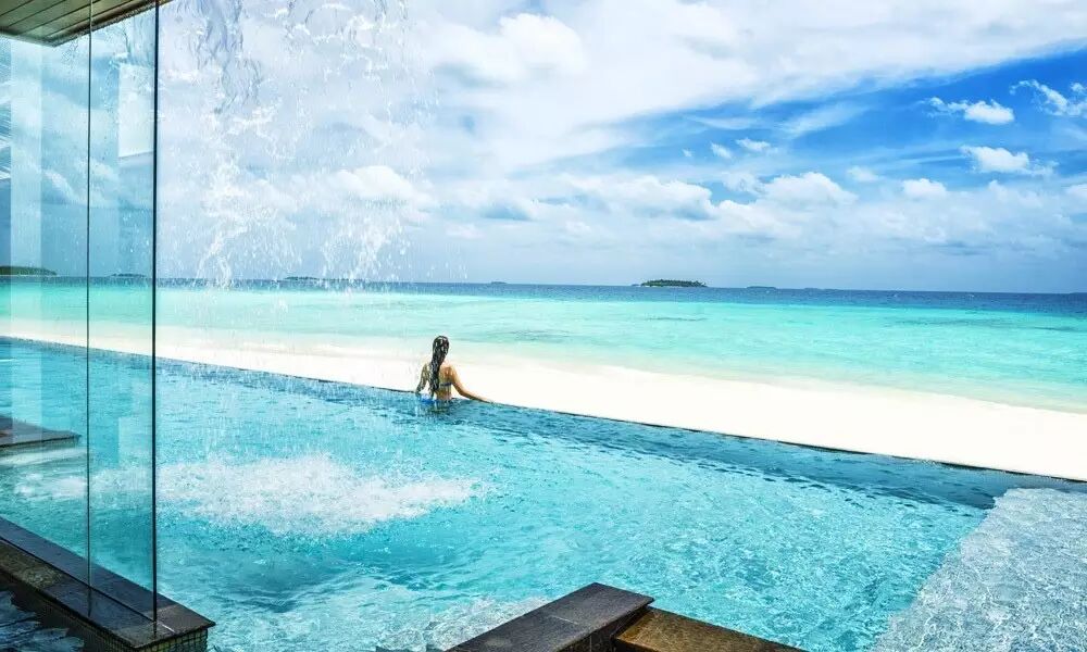 有马尔代夫最大的无边泳池,面积足有750平米。