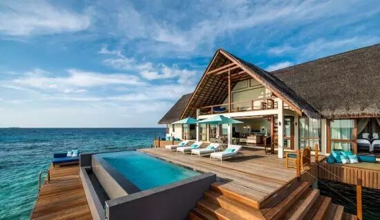 奢华度假的代表,房间都带私人泳池,这里的沐浴用品皆为Bliss品牌;水上屋里有透明玻璃地板,可直接看到水下的珊瑚和鱼;浮潜还非常棒,有中文GO,总之这是一家非常不错的酒店
