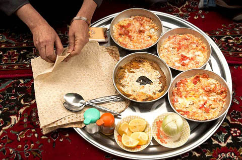 特色就是这些抹了黄油和果酱的烤饼面包。当这样简单的早餐不能满足伊朗人的需要的时候,他们就会吃哈利姆。哈利姆是在一个巨大的容器中用小麦,肉挂,黄油和糖与肉丝共同混合烘焙而成的食物。加热和放凉,哈利姆都可以食用。这里你也可以看到伊朗版本的煎蛋是什么样子的。