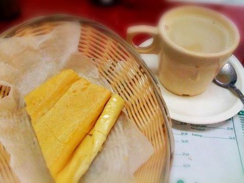 通常包括加糖,加牛奶,还放一小撮盐的咖啡。古巴最独特的面包是烤出来,涂上黄油,切成一定长度,蘸着咖啡一起吃。