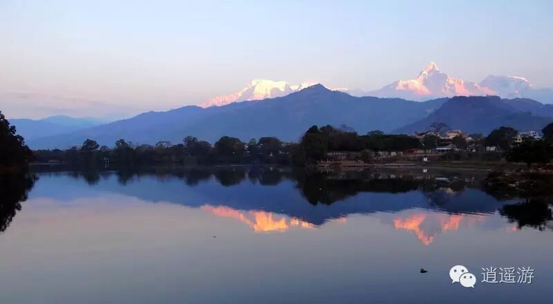除了滑翔之外,傍晚时分泛舟费瓦湖也是很不错的选择。日落时分的费瓦湖特别的美,太阳的余晖撒在波光粼粼的水面,衬着湖畔色彩各异的小洋房,很美。运气好的话,可以看见湖畔连绵的雪山,听说超震撼的,可惜云雾厚重,我们只有幸见到了鱼尾峰的山尖。看了之后会让人有种流连忘返的感觉。划船可选择由船工划或自己动手,价格均不贵,各位童鞋可视情况决定。