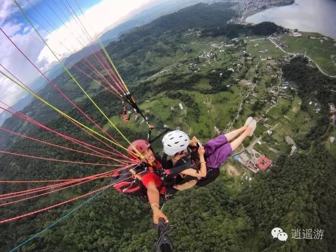 博卡拉最著名的便是它廉价的滑翔,听说是世界价格最低廉的了。滑翔可以在住宿的宾馆进行预定,推荐Hotel Diplomat.很干净漂亮的小洋房,房间条件也很好。建议选择向阳的房间,早上在阳光鸟鸣中自然醒很有感觉。有Wifi,热水24小时供应。老板会说部分中文,也可用英语交流。双人间500卢比,约人民币33元。滑翔业务分为带Video(录像)和不带Video(不录像)两种,一般价格分别为6000卢比和4500卢比,人多可讲价。同行的姐姐以5500卢比拿下带录像的滑翔。安全系数挺高的,因为全程有教练陪同,不用担心。但听闻部分恐高人士也会有稍许不适。