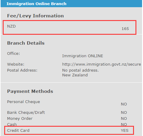 申请费用165新西兰币=795人民币=930港币=120美金