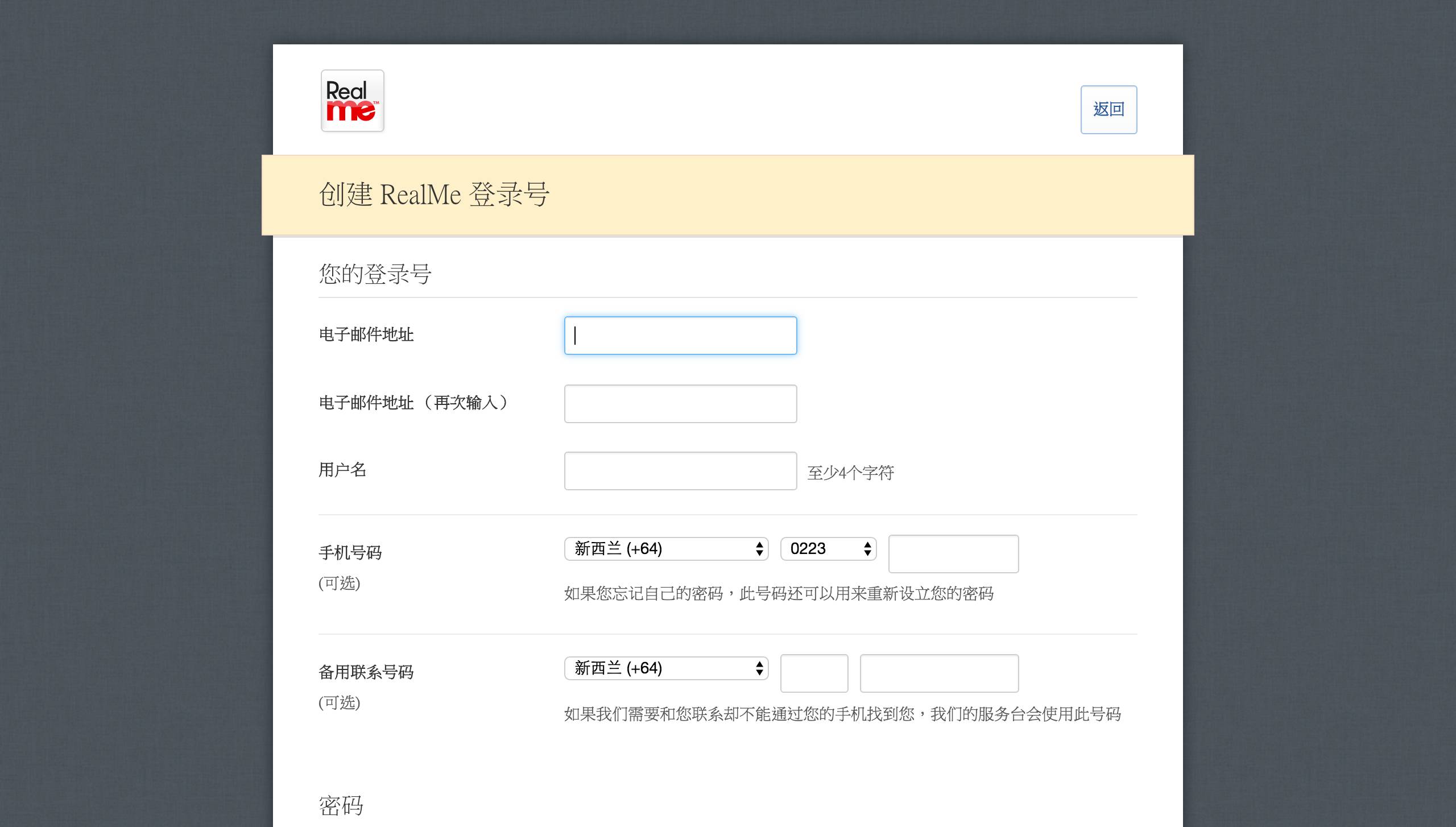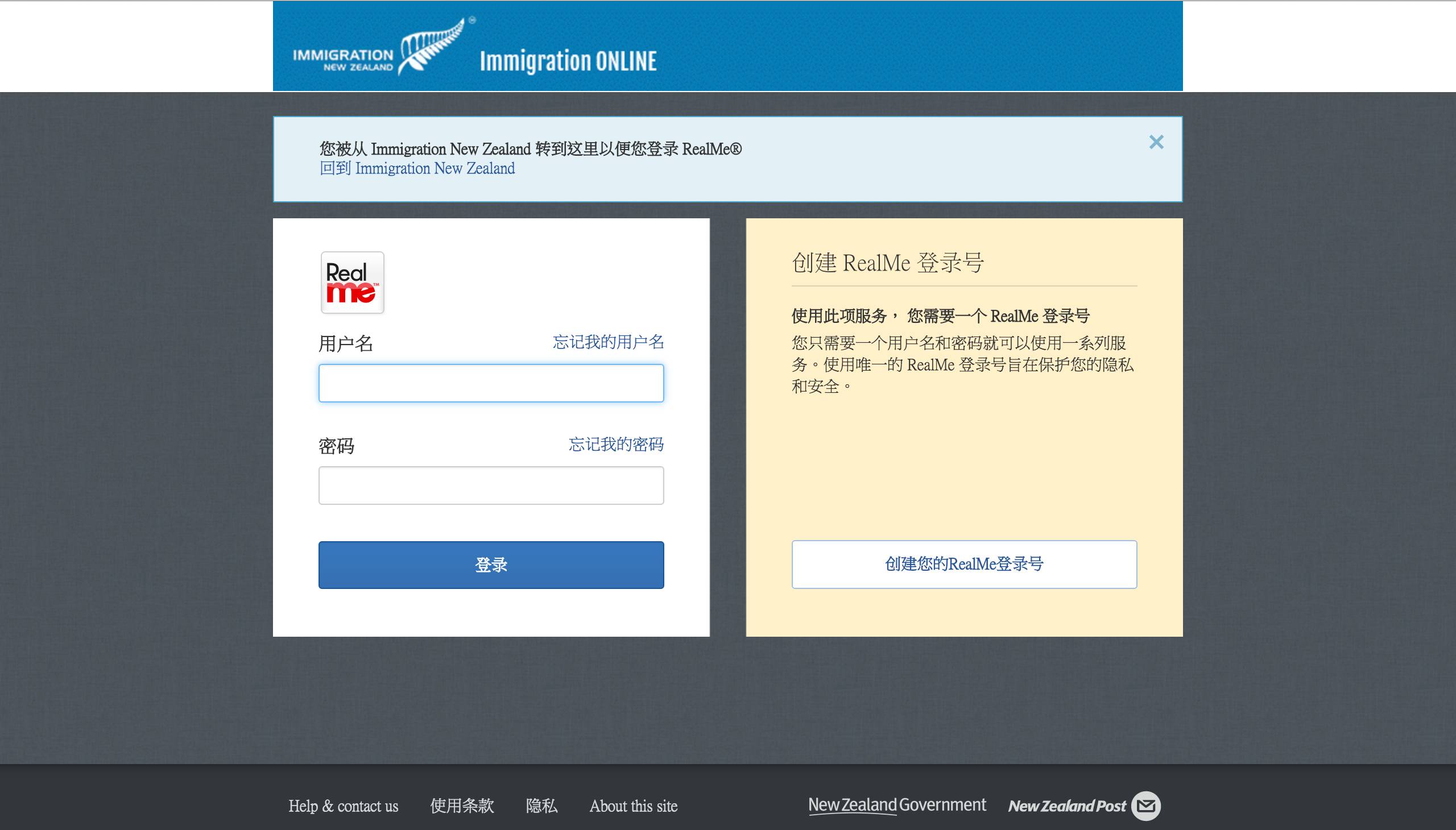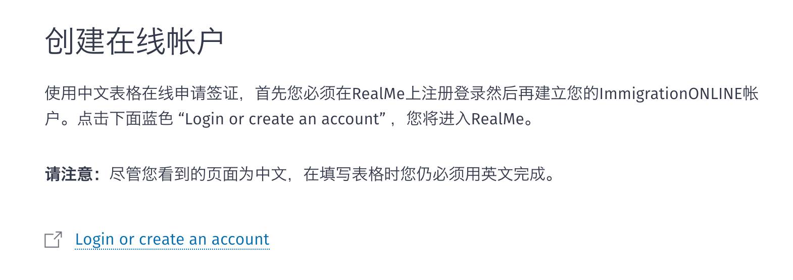5. 点击蓝色链接,创建RealMe在线账户。