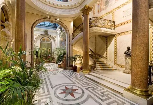在这座19世纪银行家的私人宅邸,游客仿佛回到繁华的法国第二帝国时代。安德烈与妻子雅克马尔不仅对艺术收藏独具品位,而且他们慷慨地把住宅、家具和艺术收藏品捐赠给巴黎人。博物馆咖啡厅位于富丽堂皇的会客大厅中。抬头看见大厅顶部是威尼斯杰出艺术家提埃波罗(Tiepolo)洛可可风格的天顶画,周围丝绸墙纸装饰的墙壁上,悬挂着18世纪法国代表画家的作品。回廊则俯瞰着花园。周末这里提供早午餐和午餐,不过最超值的,是在这里享受一份下午茶。茶叶品种丰富,更有新鲜出炉的面包和蛋糕供选择。