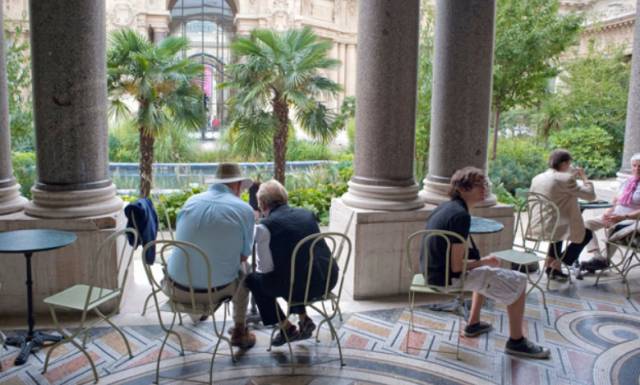 不得不承认,从展览品质上巴黎小皇宫并不占优势,但它的餐厅“小皇宫花园”却能给访客带来惊喜。它位于博物馆正中,本身是一处种植着奇花异草的室内花园,装饰着新艺术风格的马赛克。餐厅拥有两层明亮的空间,桌子摆放在大理石柱子之间,能眺望花园和皇宫穹顶。餐厅提供沙拉和意大利面为主的简餐。下午茶值得一试:提供Lenôtre的马卡龙和Mariage Frères的茶叶。