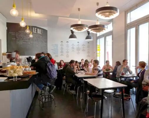 坐落在新兴的克里希广场街区以北的Le Bal是一家当代艺术画廊和视觉艺术中心。它的咖啡厅由两位活跃的英国厨师Alice Quillet and Anna Trattles打理。他们的创意菜肴让许多巴黎本地人都趋之若鹜,看看他家大受欢迎的午餐菜单吧:烟熏黑线鳕鱼、卷心菜汤和羊肋排配蚕豆和菊苣。咖啡厅营业至晚上11点,提供下午茶和晚餐tapas。