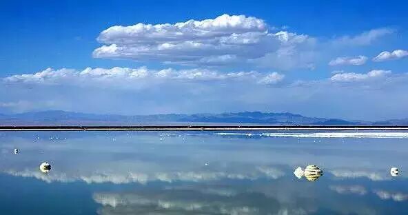 令人难以置信的是盐湖上还有一条长32公里的公路和铁路穿行而过,是一座浮在卤水上的“万丈盐桥”。