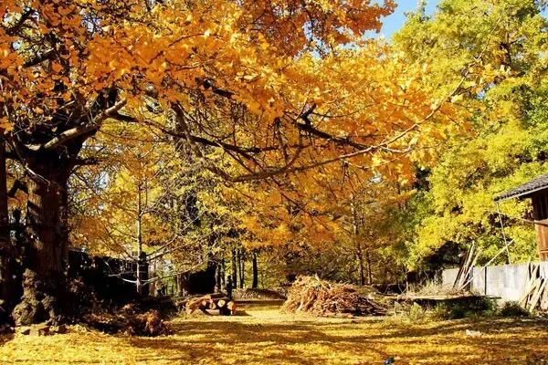 每到深秋,房前屋后,黄叶纷飞,异常美丽。珍贵的百年银杏树让这个小村庄显得古朴和深邃。你可以尽情地在天堂里撒欢,让灵魂在金黄之间自由飘逸,为那一树树灿若黄金的奇特景观叹服!