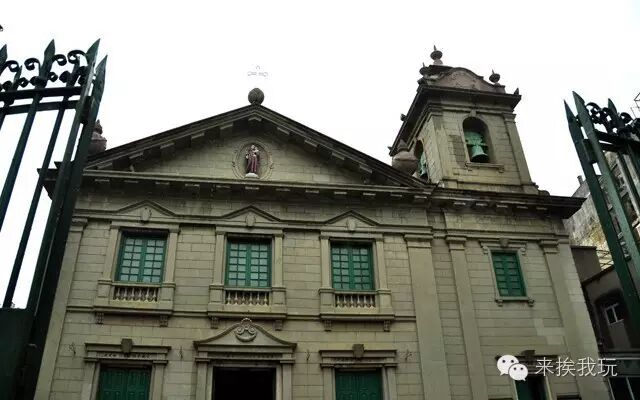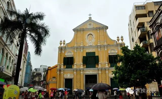 大堂(主教座堂)是天主教澳门教区的主教堂,开埠以来,澳门总督都习惯在这里举行就职典礼,于1622年建成,而现在的样子,是1937年重建的,外形庄严纯洁,内部清丽简约,一派新古典主义风格。我是在苗妈和苗排除买鱼丸的时候跑上来拍的,此时正是大雨瓢泼,主教座堂的外观看起来很严厉。