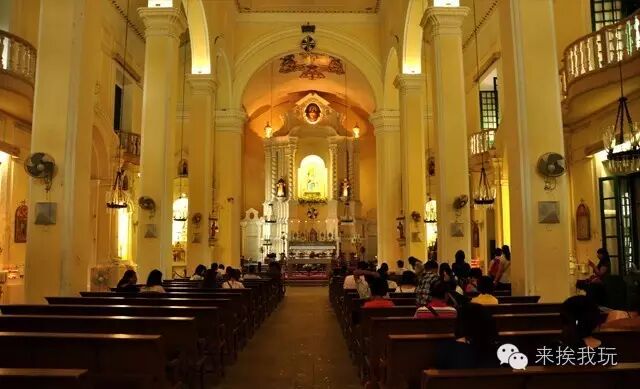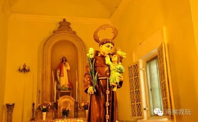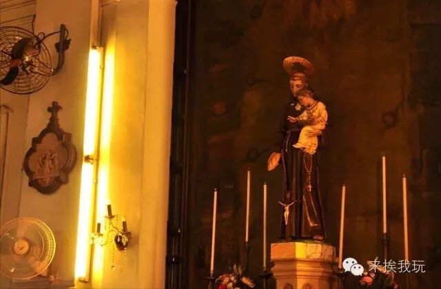 圣安东尼教堂是澳门三大古老的教堂之一,就是因为去看这个教堂,才忘记去找那条叫恋爱的小巷。始建于1560年,是耶稣教会最早在澳门驻扎的地方,教堂奉圣安东尼为主保,以往葡萄牙人的结婚典礼大多在这里举行,信徒都身着白袍,手捧花枝,故又有“花王堂”之称,现在教堂正立面为新古典主义风格,室内祭坛则为巴洛克风格。