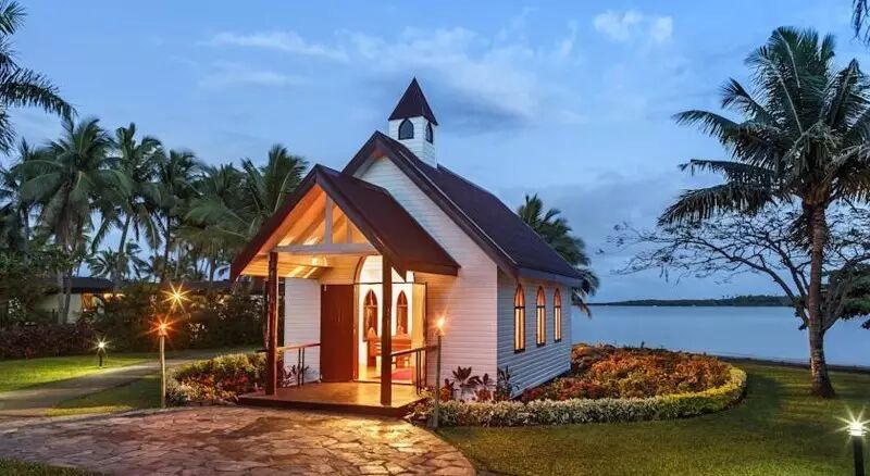 伫立在 Denarau 岛海边的 Sofitel Beach Chapel 占据着酒店的最佳位置。这座教堂有着独具特色的红色三角形屋顶,神坛背后就是大海。举办仪式时,斐济圣歌队的福音会响彻教堂,给你一个美妙高雅的婚礼体验。