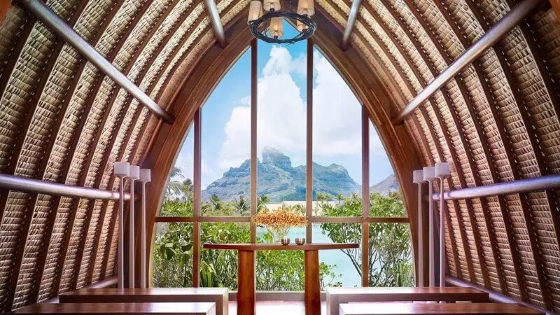 酒店拥有7个风格各异的婚礼场地,除了海滩婚礼外,这里还有一家四面都是落地窗的教堂Aherenoa Chapel,教堂后面就是美伦美奂的礁湖背景,这样人间仙境般的美妙婚礼一定让你终身难忘。