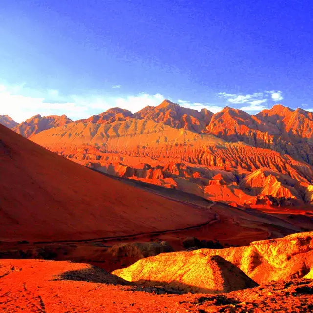 在这里,你能享受草原游牧文化、西域民族风情、地域特色民俗等人文景观。无论是想要观光旅游、还是休闲度假,甚至是学考察在这里都会有自己的收获。 库木塔格,维吾尔语是“沙山”之意。库木塔格沙漠的形成,主要是因为来自天山七角井风口和达坂城风口的狂风,沿途经过长风程,挟带着大量沙子,最后在库木塔格地区相遇碰撞并沉积,形成“有沙山的沙漠”这一独特的景观。站在大漠深处沙山之巅,可静观大漠日出的绚丽,目睹夕阳染沙的缤纷,赞叹“大漠孤烟直,长河落日圆”的壮景。