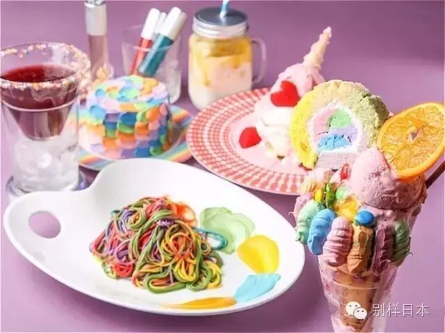 打开菜单发现,这里的料理完全没输给装潢,连意大利面都是彩色的,仿佛自己在梦幻童话中见到的甜品一样耀眼。