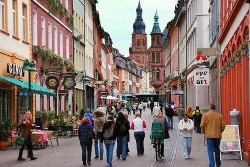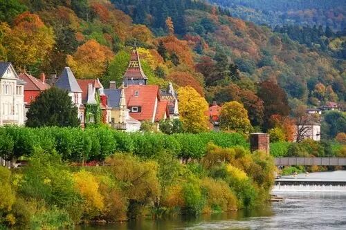 在海德堡确实很难区分哪里是校园里,哪里是校园外。青山绿水间的海德堡,石桥、古堡、白墙红瓦的老城建筑,充满浪漫和迷人的色彩。沿着内卡河漫步,走一走著名的海德堡古桥;或者攀上王座山,走入红褐色的内卡河砂岩筑成的海德堡城堡;又或者到城中的广场去瞻仰一下俾斯麦的塑像,都可以窥见海德堡魅力。建议向往哲学的人们去走一走“哲学家小路”,它与海德堡城堡隔河相望,历史上许多诗人、哲学家曾经常在这里散步和思考,如哲学家黑格尔、诗人歌德、荷尔德林等。