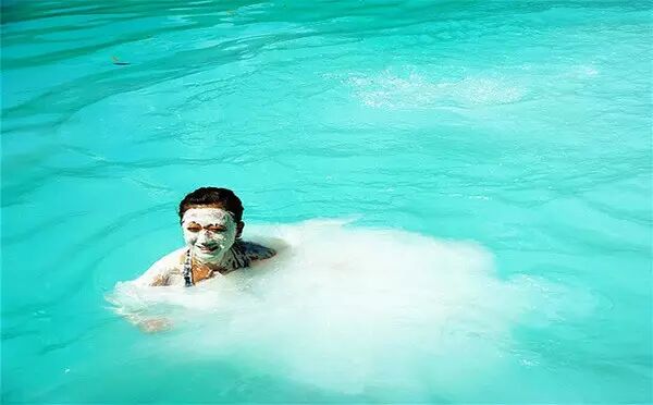 它其实不是淡水湖,只是一个众小岛之间的小小海域,只是地形的关系,看起来像座湖。在古代,这里是火山活动频繁的区域,火山喷发后的火山灰沉积湖底,常年 累月,形成厚厚一层的火山泥。由于帕劳的海水透明度极高,湖底沉淀的火山泥使海水蓝绿色中带点乳白色,加上湖底绵白的火山泥很像牛奶,所以才被称为牛奶 湖。虽然火山活动已经暂停,但湖底仍渗海底温泉,使得牛奶湖的湖水有淡淡的硫磺味。含有矿物质的火山泥,有着很好的美颜效果。