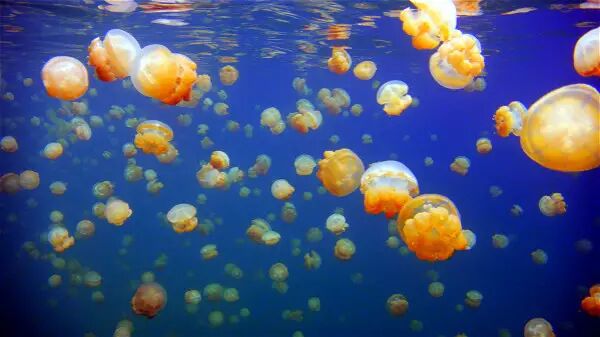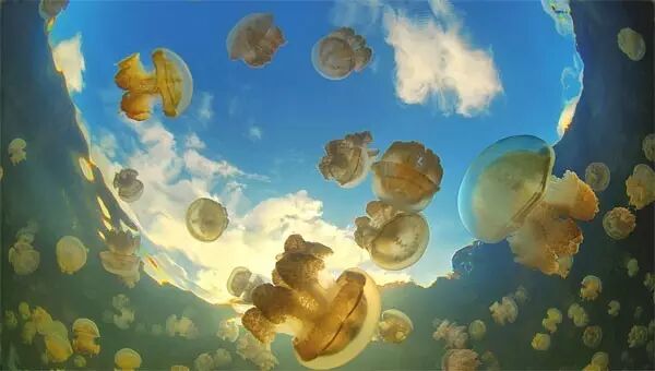 在数万年前,水母湖曾是海的一部分,由于地壳运动,周围的海床升高,逐渐将它与外海隔绝,形成了一个看似普通的内陆咸水湖。湖中大多数海洋生物都随着养分的消耗而消亡,只剩下了一种低等的、靠少量微生物就可以生存的海洋生物——水母。由于天敌们的消失,这些水母“遗失”了祖先用以防卫自身的武器——身体内的毒素。这样,帕劳水母湖拥有了世界上独一无二的无毒水母。
