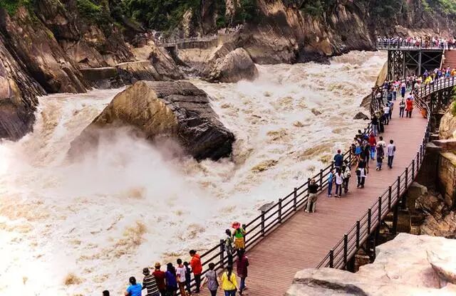 虎跳峡是世界上落差最大的峡谷。峡长17公里,谷地海拔1800米,江面落差200多米。有18个险滩,两岸雪山峭壁笔立于江面之上3000多米。整个阿仓虎跳峡分为上虎跳、中虎跳、下虎跳三段,迂回道路25公里。各段江面奇窄,北岸只容一个单行的山道旁,飞瀑直泻,巨石横生。