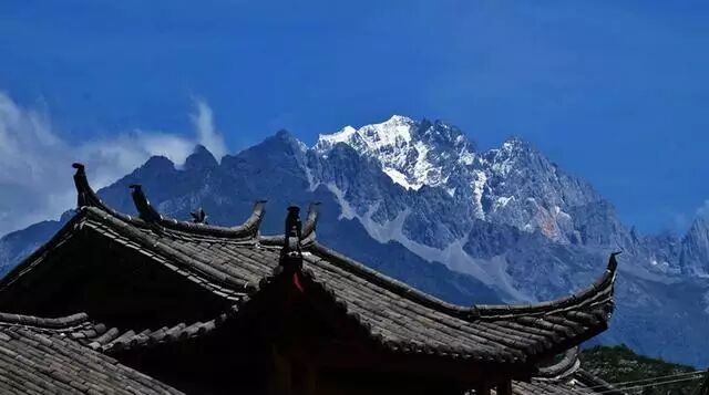 玉龙雪山位于丽江西北,呈南北走向,东西宽约13公里,南北长约35公里,与哈巴雪山对峙,汹涌澎湃的金沙江奔腾其间。全山13峰,因有冰川,所以峰峰终年积雪不化,如一条矫健的玉龙横卧山巅,有一跃而入金沙江之势,故名“玉龙雪山”。玉龙雪山自古就是一座壮美的风景雪山,唐朝南诏国异牟寻时代,南诏国主异牟寻封岳拜山,曾封赠玉龙雪山为北岳,至今白沙村北北岳庙尚存,仍然庭院幽深,佛面生辉。拜山朝圣者不绝于途。