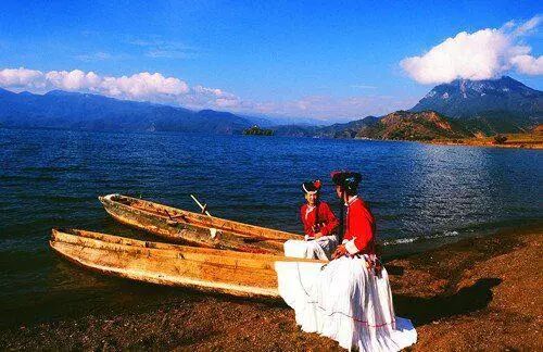 纳西族摩梭语“泸”为山沟,“沽”为里,意即山沟里的湖。泸沽湖四周崇山峻岭,一年有三个月以上的积雪期。山清水秀,空气清新,景色迷人,泸沽湖被当地摩梭人奉为“母亲湖”。民间传说中的女儿国,存在至今的,恐怕只有摩梭人这一族了。他们至今仍保留着“男不婚、女不嫁、结合自愿、离散自由”的母系氏族婚姻制度。
