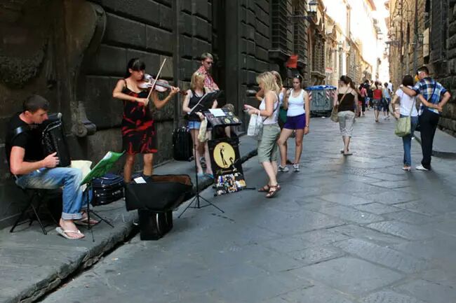 如果导游需要高高地举着一把伞来避免成员跟丢,那就说明这个团的人太多了。在教堂或博物馆参观时,雇上一个私人或半私人的导游进行讲解,你一定会享受到更多的乐趣,也会收获更多的知识。或者,要是有冒险精神的话不如自己行动。佛罗伦萨并不大,在地图上很好认路。远离人群,独自行动吧。