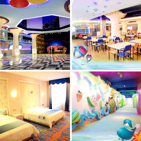 酒店还有非常专业的室内游乐城,有儿童淘宝商店、儿童理发厅、儿童书吧、亲子水吧、亲子水上乐园、亲子5D影院等设施,据说是由台湾知名儿童偶像明星苹果姐姐倾力打造的,非常寓教于乐。每个到过这里的孩子,都对这里念念不忘!值得一提的是,酒店还会准备特别儿童早餐,非常受小孩子们欢迎;如果想久玩几天,还可以去附近的长隆景区畅玩。