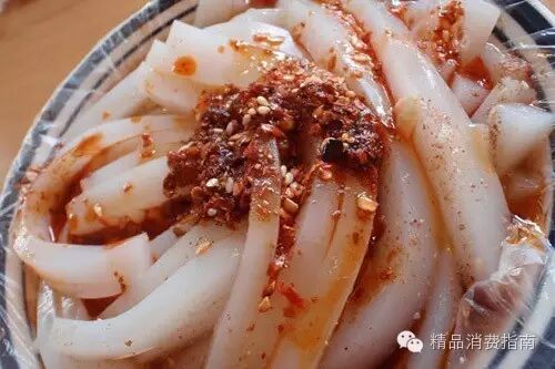 藏式凉粉的特别之处是辣椒,藏式辣椒和油辣子不同,它主要是用水泡出来的,所以辣得很清新。藏式凉粉里面还配有土豆块。在八廓街小巷子里面一般都有卖,一块钱一碗。