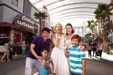 熠熠生辉的“星光大道”两旁是好莱坞电影中的经典建筑,排列的棕榈树更是让你仿佛置身于闻名遐迩的好莱坞。看,性感女神玛丽莲梦露来啦!赶紧找个合适的角度与她愉快地合影吧~