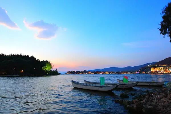 洱海古称“叶榆水”,外形如同耳朵,故名洱海。泛舟湖上,如明镜般的海面碧波荡漾,白帆点点,悠然回漾,“船在碧波漂,人在画中游”的意境,给人以宁静而悠远的感受。每逢风和日丽之夜,行近洱海之滨,仰望天空,玉镜高悬,俯视海面,万顷银涛,一轮明月在海中随波飘荡。