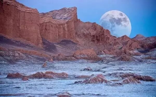 宽广的盐碱地、永恒的雪火山、构造如同外星球的月亮谷,如同盖着雪白幔布,纯净而优雅。色彩斑斓的戈壁,随着阳光角度变化不停调色,黄昏的夕阳越过悬崖与深蓝天空形成强烈视觉对比。想想都觉得实在太美。