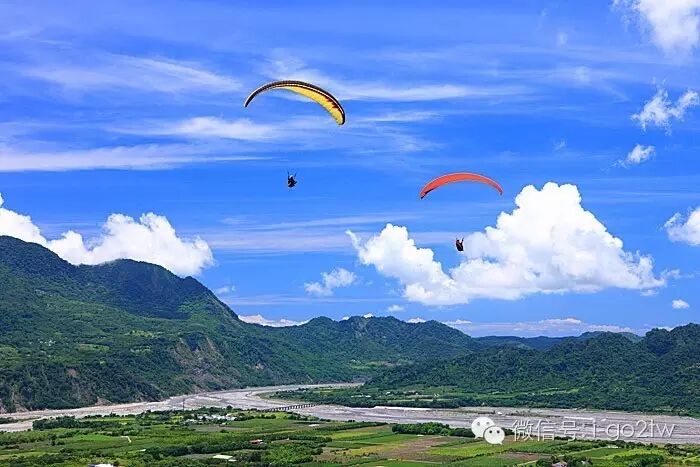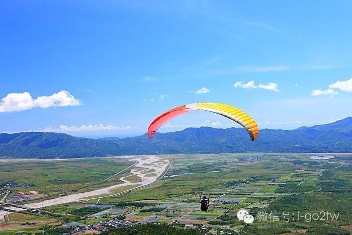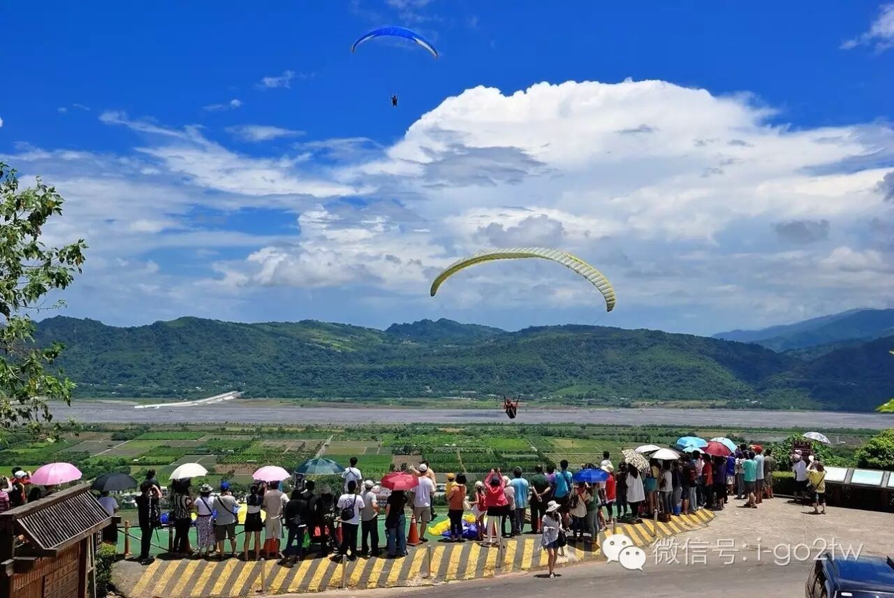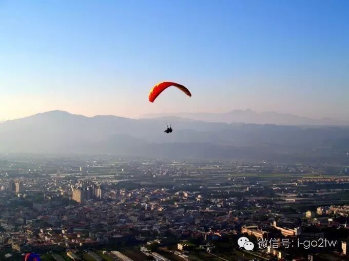 泰平山起飞场海拔918米,是台湾最高的飞行场地,从山顶起飞,海岸山脉、台东纵谷都在脚下,还能远眺太平洋。