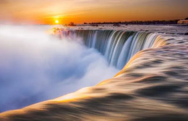 你可以乘坐游轮穿梭于波涛汹涌的瀑布之间,在扑朔迷离的水雾之中去领略奔腾而下,惊心动魄、涤荡尘嚣的感觉;你也可以穿行于瀑布背后,登上Skylon Tower,或者乘坐漩涡喷气艇在惊心动魄的尼亚加拉大峡谷中穿梭飞跃,全方位感受气势磅礴的大瀑布充沛的水量、雷鸣般的轰鸣声和壮丽景色。而当夜幕降临,围绕着瀑布周围的巨型聚光灯突然齐放绿光,原已在暮色中变得灰黯的瀑布,顿时大放光彩,熠熠生辉。