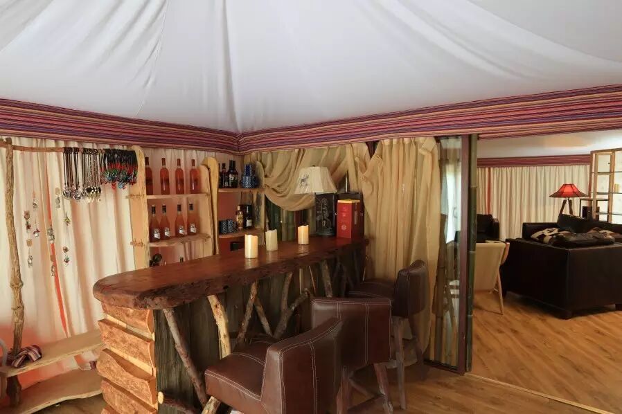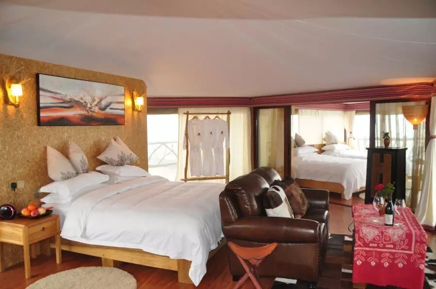 每个房间就是一个帐篷,有一室一厅和两室两厅等不同房型。房间的装饰简约奢华, 每个房间都拥有宽阔的阳台,能让居住在这里的游客慢慢欣赏草原景色,寻找一种回归自然的感觉。