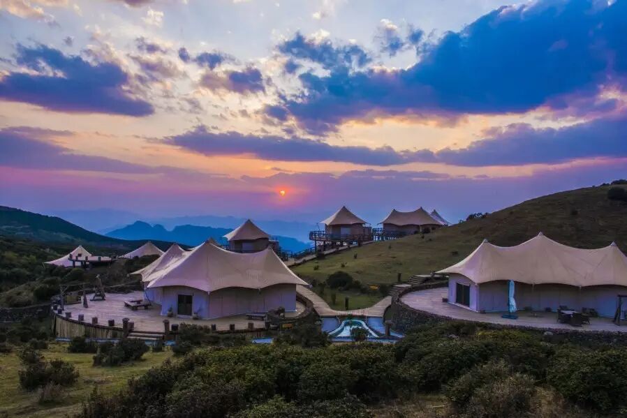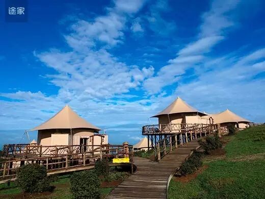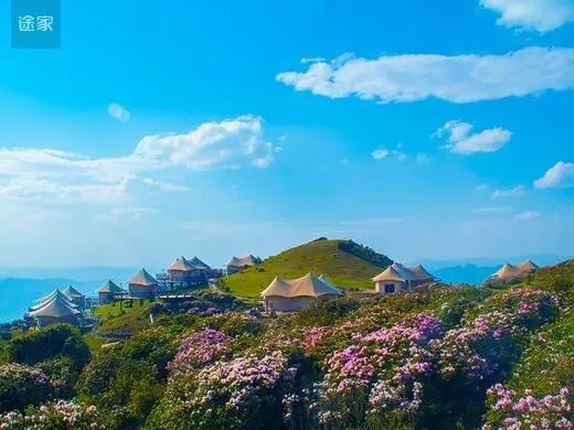 六盘水途家故艾蒙帐篷营地坐落于贵州盘县乌蒙大草原景区内,12顶帐篷四周被矮脚杜鹃围绕,与起伏的草场融为一体,美不胜收。“故艾蒙”的含义是“我爱你”,所以这里推荐的不止是一个景区,而是爱的暗语。