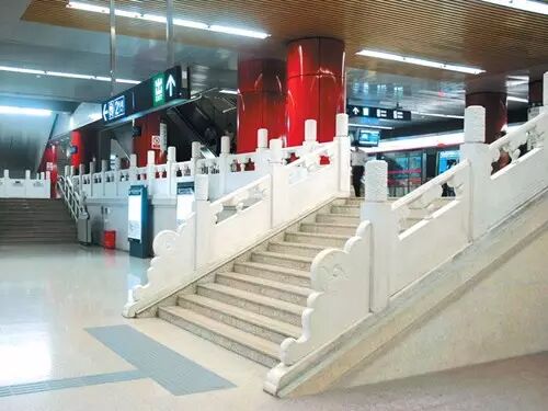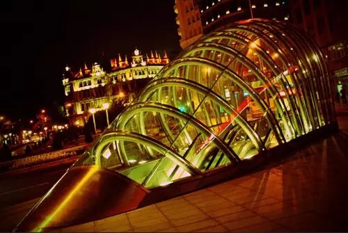 玻璃结构的设计使得地铁站白天可以得到充足的光线,而夜晚则灯火通明。
