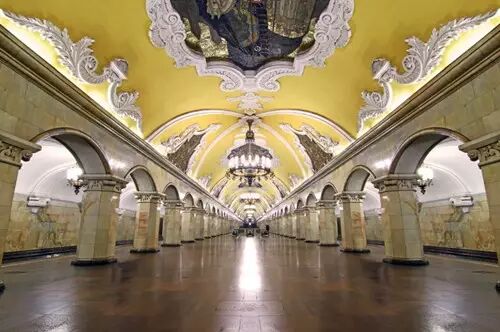 巴洛克风格的装饰,颇具沧桑感的马赛克壁画和天花板上的大吊灯,Komsomolskaya地铁站看起来更像一个豪华的大宴会厅。作为莫斯科交通最繁忙的区域之一,为缓解日益拥堵的地面交通,地铁站开通于1952年。