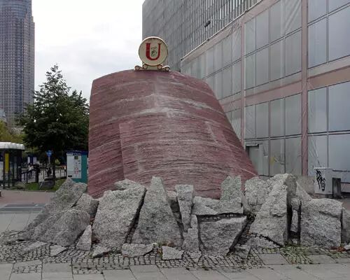 建筑师Zbigniew Peter Pininski为了区分自己的设计的位于德国法兰克福的Bockenheimer Warte地铁站与其他法兰克福车站不显眼的极简主义,于是就有了一个极具视觉冲击的地铁站入口。车厢一头撞向行人道的即视感设计,路人很难不留下深刻的印象。