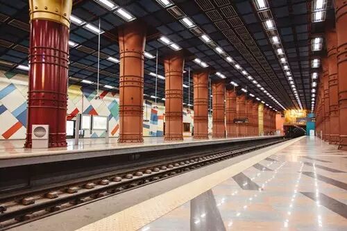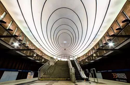 1998年地铁站建成之初很普通,然而3年后地铁站焕然一新。站台上装饰了11个巨大的圆顶照明灯,周围投射出蓝色、黄色和红色的光线让地铁站如梦如幻。