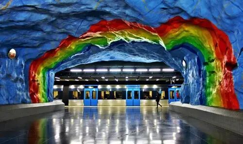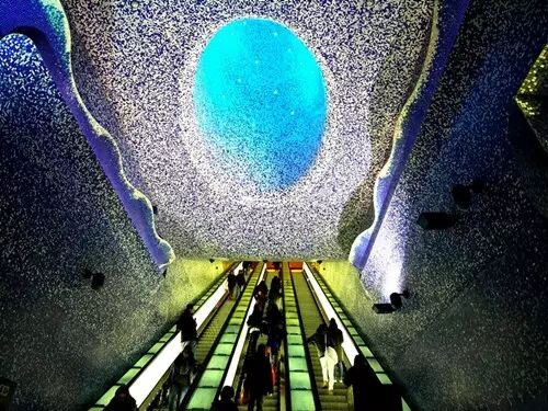 从地面上看,斯德哥尔摩的中央车站看起来只是一个普通的快速交通系统。然而,当你开始进入地下世界,地铁站开始有了意想不到的颜色和形状的变化。站在蓝色和白色,洞穴一样的站台里,会暂时忘记自己是来乘地铁的吧而是经历一场地下探险。