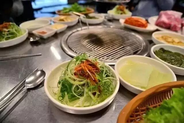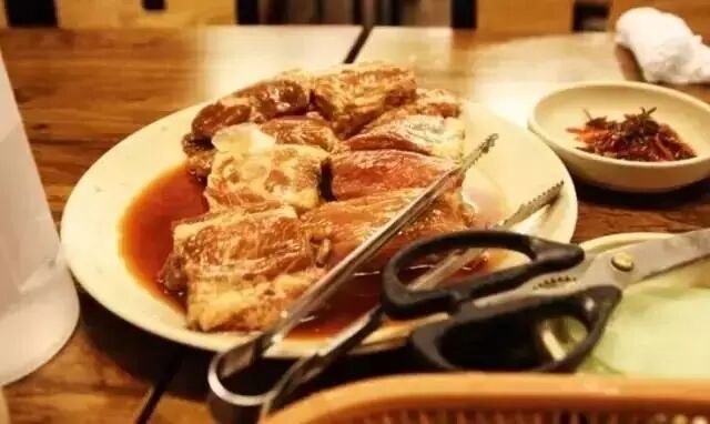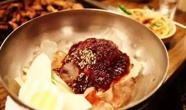 店里的烤酱料排骨肉,选用新鲜济州黑猪排骨,经过秘制酱料腌制都非常不错,均为直火烧烤,肉质鲜嫩,用生菜包起来吃别有一番风味。另,除了纯排骨肉,亲手制作的冷面也是本店的一道美味。