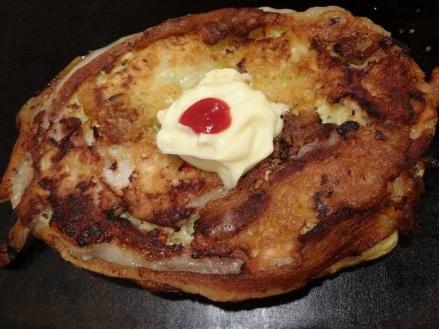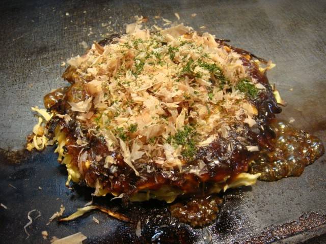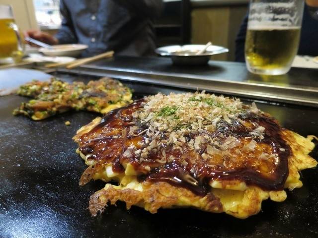 最受观光客欢迎的大阪烧店。这家的招牌是「牛すじねぎ焼き」,浓郁的酱油味,口味偏甜。