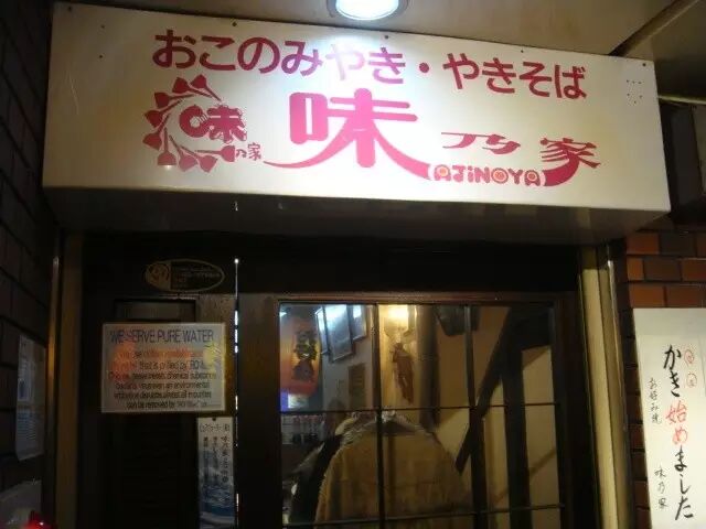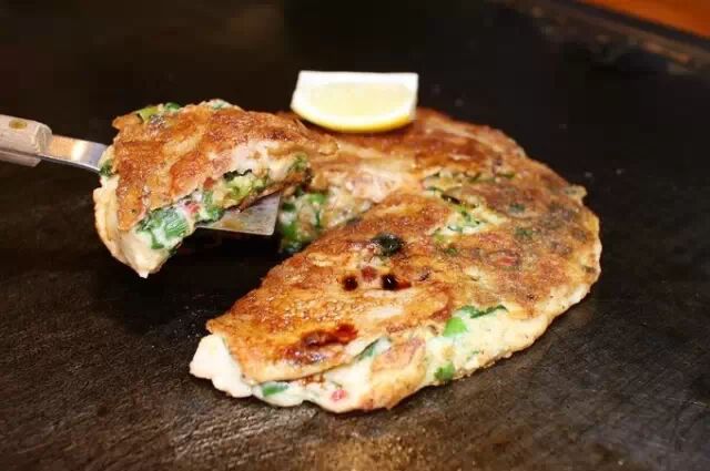 这家店是大阪非常典型的店铺,每桌都有铁板,烤好后可以根据自己的喜好浇上沙司和红姜等,好吃到爆哦!