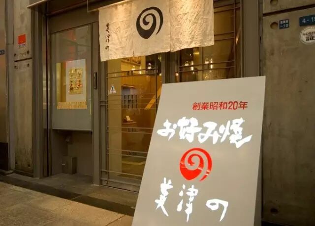美津の于1945年(昭和20年)开业,作为大阪烧的老铺,是大阪烧的发烧友必到之地。这里的招牌是干贝海鲜山芋烧,干贝足足有5枚,肉肥味美。不加面粉完全100%山芋制成,口感松软,非常好吃。
