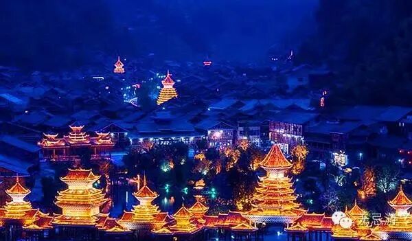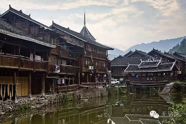 肇兴侗寨是全国最大的侗族村寨,寨中的房屋全是依河而建的吊脚楼,鳞次柿比,疏密有致,全是用杉木建造的。