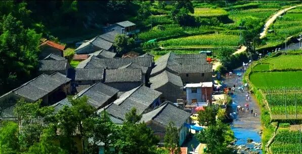 这个始建于唐代末年的大型村寨本无芙蓉,因其西南方的芙蓉峰而得名。芙蓉山由三座高峰组成,其色白里透红,如同三朵含苞待放的娇艳芙蓉。芙蓉村是陈姓的聚居之地,整个古村呈正方形,坐西朝东。寨内白墙青瓦,绿树成荫。寨墙由鹅卵石砌成,而建筑多为木质结构。村里有一方芙蓉池,芙蓉池中有一座两层楼阁式歇山顶的芙蓉亭。亭子飞檐翘角,空透玲珑,宛若一朵盛开的芙蓉花,与湖水倒映的芙蓉峰相互映衬。湖水被村民引入小溪,路旁水涧潺潺湲湲,小村显得分外安逸。风一吹,带好似来阵阵芙蓉清香。